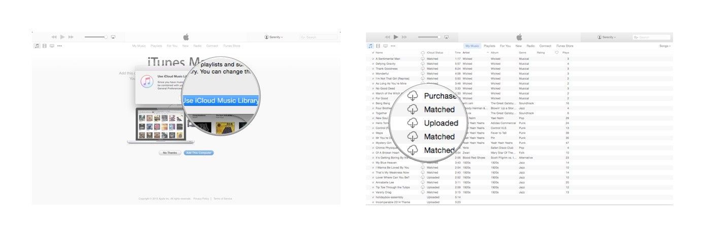 Когда вы подписываетесь на Apple Music или отдельную службу iTunes Match, Apple сканирует вашу музыкальную библиотеку iTunes, чтобы проверить и посмотреть, какие дорожки у вас есть, также перечислены в iTunes Store.