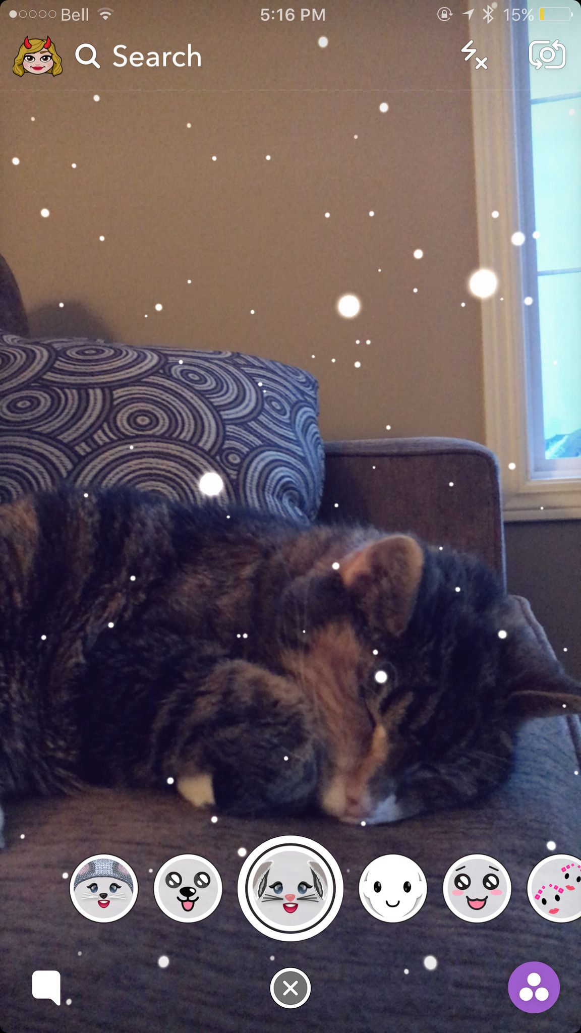Некоторые из фильтров являются чисто экологическими, а это означает, что вам не нужно ничего делать, кроме как перемещать камеру, чтобы испытать их. Другие немного более интерактивны: с помощью фильтра кролика вы должны коснуться экрана, чтобы активировать крик кролика. Для фонарика, вам нужно коснуться экрана, чтобы включить или выключить его.